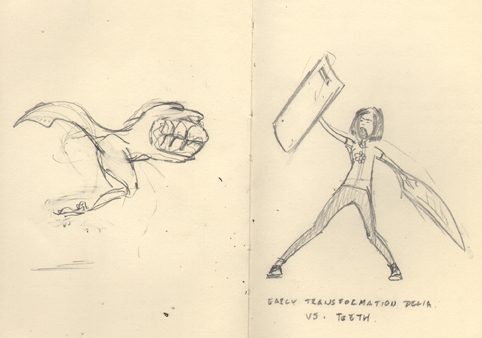 delia sketch 5 Published March 29, 2013 at 482 × 338 in Delia Awesome’s Bogus Journey And we start to see the shape-shifting abilities in action.